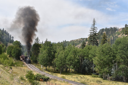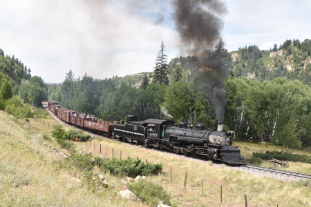 Cumbres and Toltec Scenic Railroad 2-8-2 487, running out of the narrows, Milepost 342.00.