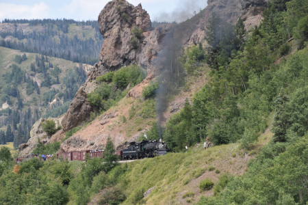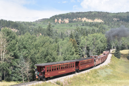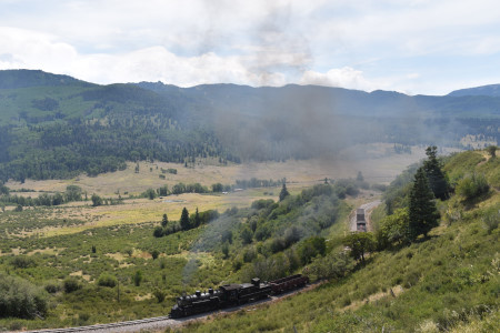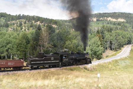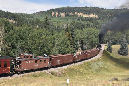 Passing Windy Point, Milepost 331.0, where the grade is up to four percent. Since the road and the tracks were no longer in close proximity, Josh and I, and most of the others, drove back to Chama. It was an uneventful rest of the day and I went to Subway for dinner then turned in early in preparation for tomorrow morning's start.