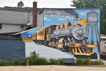 In Watervliet opposite the station is Sidetrack Café, painted by Eduardo Diaz in late June 2024.
