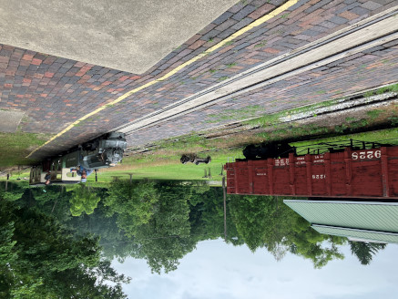 it started to pour and we were glad to be inside. Our umbrellas came in very handy as we returned to the car, passing Sullivan Machinery 7 ton switcher 1, built by Whitcomb Locomotive Works in 1923, utilized as a children's attraction. We drove to Kankakee, Illinois, stopping at Jersey Mike's in Bradley before checking in to the Quality Inn for the night.