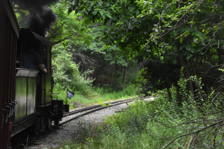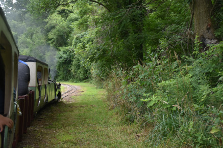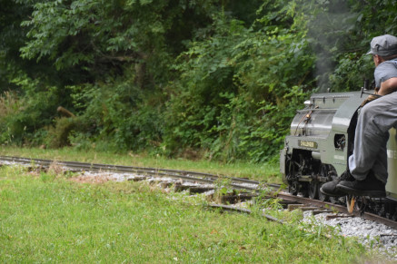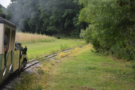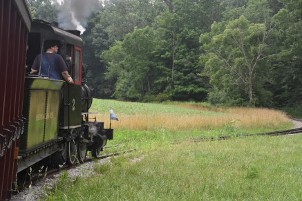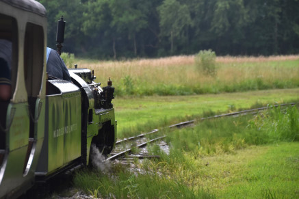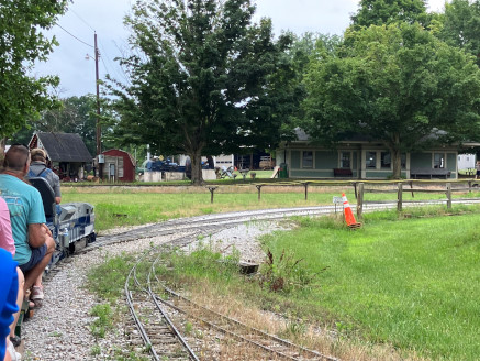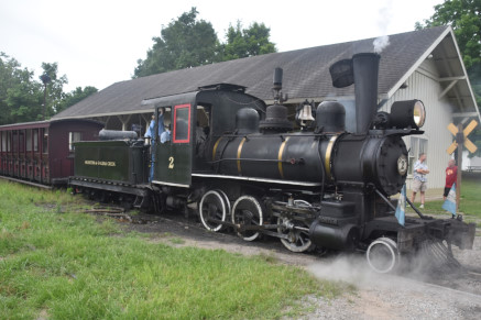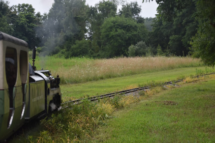Early OperationsWeekend (Memorial Day to Labour Day) operation of the railroad began in 1969. Additional buildings were erected and more equipment arrived for restoration and exhibit each year. The Shay locomotive restoration was completed and dedicated August 30, 1975. Unfortunately, Mr. Donnelley passed away in late December 1975. His family donated the 14" gauge railroad that had operated on his Lake Forest estate and it was removed by society members during 1976 and moved to the steam grounds. Construction on the new site started in 1977. Completion in July 1982 was marked with a Golden Spike ceremony.