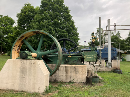 Chesapeake and Ohio caboose 90345 built by American Car and Foundry in 1949, painted as Chicago, South Shore and South Bend 345. Browning locomotive steam crane used to lift logs on to the sawmill skidway when operation demands. It was built by the Browning Crane & Shovel Company for the United States Navy in 1941. The electric power plant and stationary engine. On special weekends, volunteers generate electricity with the City of LaPorte’s first electric generator. The steam engine will spin the dynamo to create 60 kilowatts of DC current,