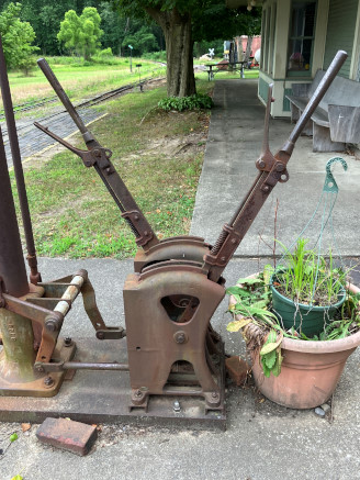 This Climax steam locomotive was built by Carl Stymans and Sons in Orange County, Virginia in 1928 and donated by Scott Sanderson. Such locomotives were built in Corry, Pennsylvania from 1888 until 1928 as a competitor to Shay Logging locomotives. The low speed gearing was designed to pull logs up steep grades. The short, ridged wheel base allowed them to navigate sharper curves than conventional "rod" type locomotives.