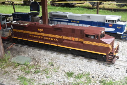 1/8 scale Pennsylania Railroad SD70ACe 8102 and Wabash SD70ACe 1070.