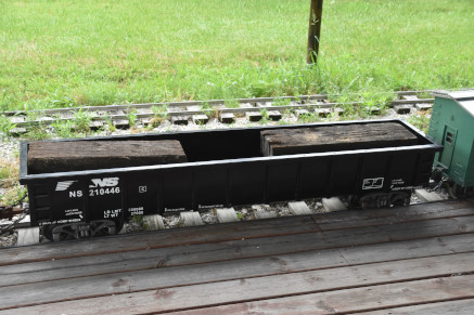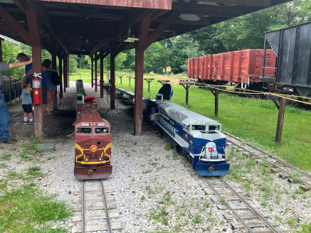 Elizabeth and I chose the 1/8" scale trains first, with Pennsylvania Railroad SD70ACe 8102 and Wabash SD70ACe 1070.