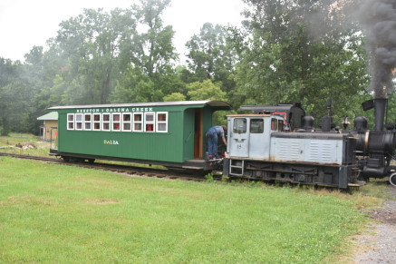 Hesston and Galena Creek parlour car 100 "Dalia", built by the volunteers in 1999 as a 16-passenger car, specifically for their Candy Cane Express and Flying Dutchman 15.