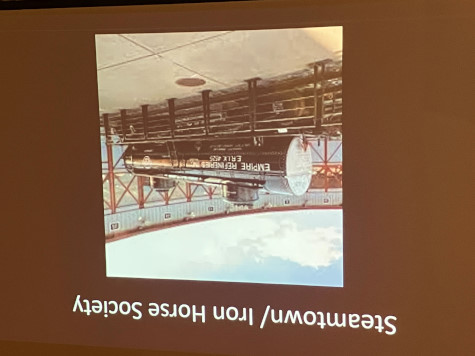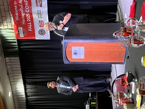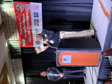 Terry Koller looks on as Aaron Isaacs, editor of the HRA Magazine (and Minnesota Transportation Museum archivist and curator), starts his presentation highlighting restoration projects, preservation or new excursion trains that have been in the news since the 2024 conference. Note: the descriptions below are taken from the individual organization's websites or social media postings to provide context.