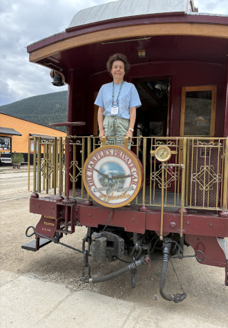 Elizabeth enjoying the view from rear platform as we made our way south.