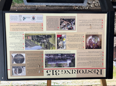 Locomotive 315 and Restoring 315 story boards. The steam engine is in Chama, New Mexico, undergoing restoration as of August 2025, but the history of it is as follows: