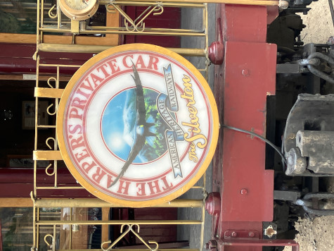 The drumhead of "General Palmer", the Harper's private car. Allen Harper is the president of American Heritage Railways, which owns Durango and Silverton Railroad, among others.