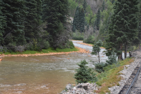 The Animas River as seen from the rear of "General Palmer", a popular place and those who spent time on the observation platform took turns.