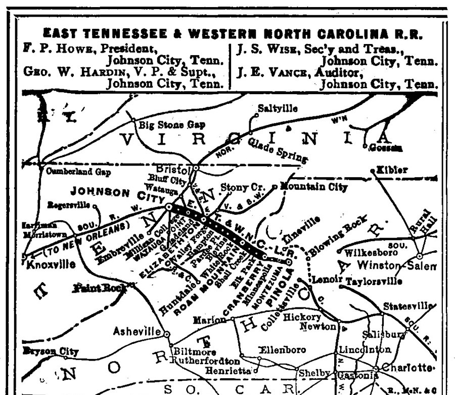 Johnson City Clinchfield, Carolina and Ohio station built in 1909, which has been re-purposed to be a Visitors Center and separate restaurant and bar. The Carolina, Clinchfield and Ohio Railway, which began as the Charleston, Cincinnati and Chicago Railroad, was built specifically to haul coal. George L. Carter bought the 3C's, reorganized it as the South and Western, then in 1908, with substantial financial backing, re-branded as the CC&O. With his headquarters in Bristol, Carter began searching for a suitable location in Johnson City. The Carnegie office building, later Empire Furniture, was first occupied by Carter in the vicinity of Fairview Avenue and Broadway. Unable to find enough land to accommodate, Carter decided to locate the yard, shops and an operating department in Erwin. In 1912, Carter moved his office from the Carnegie building to the Love-Thomas building on Ashe Street.