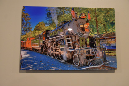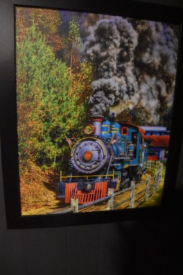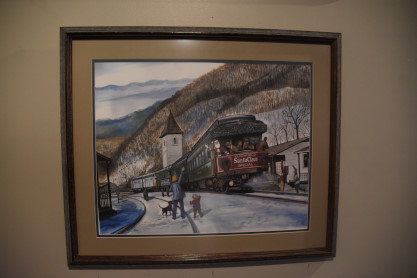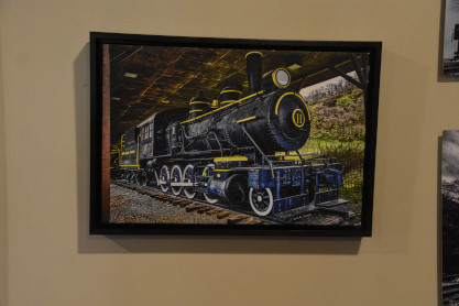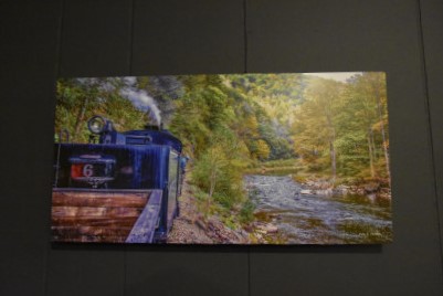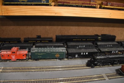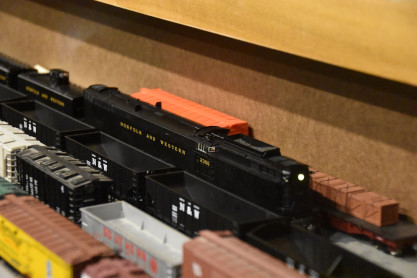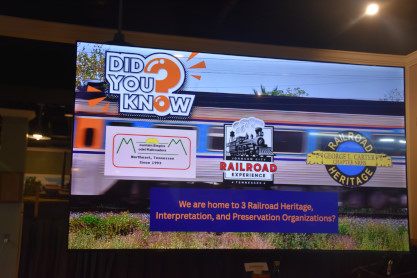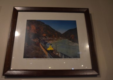 project. So not only will you be able to enjoy the operations of the trains, you will also be treated to watching the scenery and the appearance of the other two phases. Norfolk and Western 2-6-6-4 1240 built in the 1950's. A CSX train on the museum tracks. Southern Railway E8A 2923. Norfolk and Western J class 607. Norfolk Southern ET44AC 3625. The Roundhouse. Three Norfolk and Western steam locomotives. Area 5 of the layout. The extensive layout which has been constructed with alcoves that allows for the curvature of the terrain. Tweetsie train in the Doe River Gorge. Tank in the Narrows. More of the diorama, a work in progress. Baltimore caboose 294 among freight cars. A large collection of HO models. An Amfleet electric cab car. Norfolk and Western 2300 awaiting its turn on the layout. Clinchfield 819 pulling a freight train. After everyone had eaten, the attendees were called to gather in the museum area and a short informational video was shown; this was the first scene. We Are Home to 3 Railroad Heritage Interpretation and Preservation Organizations: