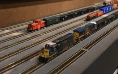The previous layout which was a single plane race track that had room inside for assembling trains and switching activity. We had approximately 2.1 miles of track in this layout. That layout provided good platform since 2007, for our members to use their individual owned modules and assemble them to create a solid modeling platform. That layout had several modules of exceptionally quality and detailed scenery which we had in a new arrangement. One of the new modules is a bridge and valley arrangement created by Dr. Fred Alsop, that is inspired by the area north of Gate City known as Copper Creek which has dual bridge, one for the CSX and the other the Norfolk Southern.