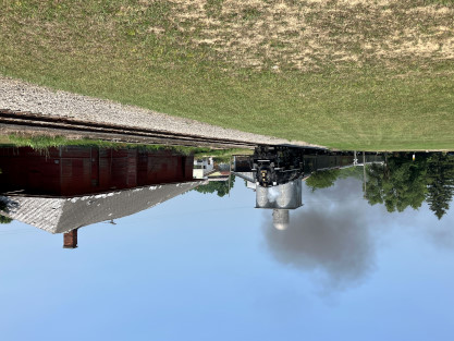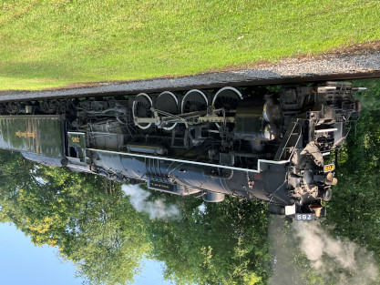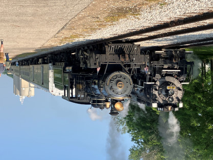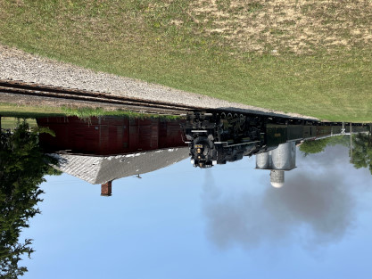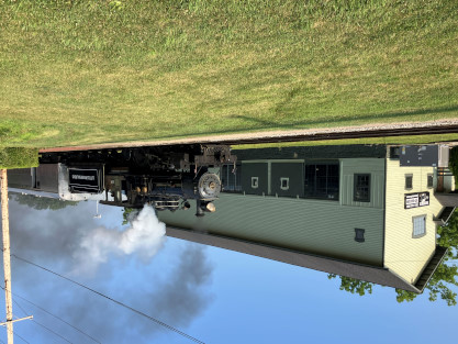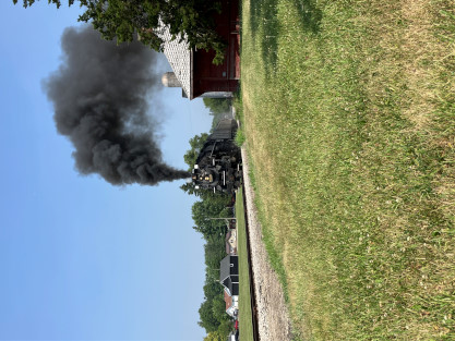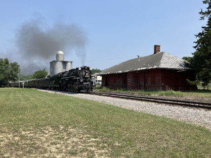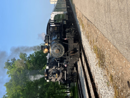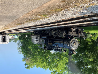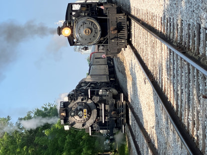 The two steam engines starting to move so they could switch, thereby allowing 765 to couple onto our train and leaving 110 in Quincy to return to Coldwater.