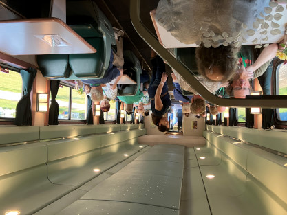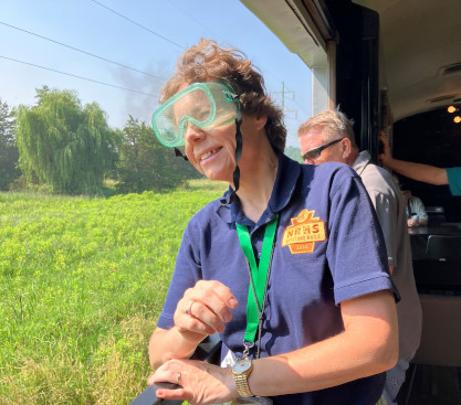 My lovely wife enjoying the scenery and sounds of Nickel Plate Road 765 in one of her favourite locations; the others are a fully open car and a vestibule. Photographs by Ron Gawedzinski, St. Louis Chapter national representative. We the ran the rest of the way to Hillsdale.