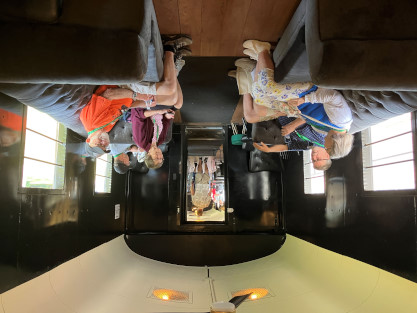 Back aboard and on the way to Hillsdale, we both spent much of the time in the open-door baggage car, with yet another nod to the car's former career.