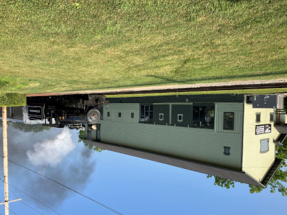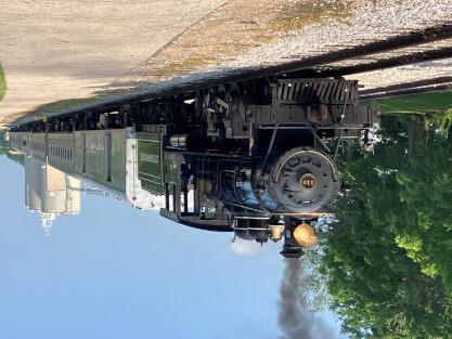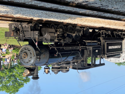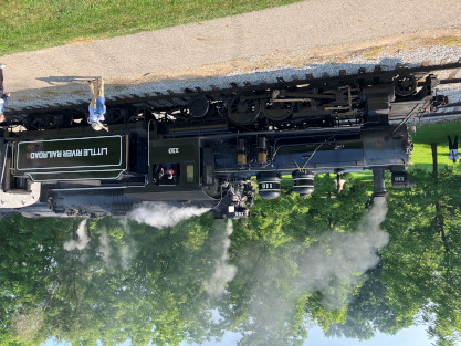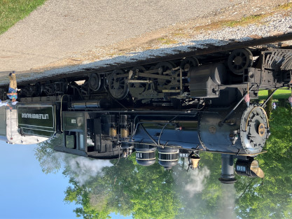 Photo runby one in the station area. Little River Railroad 4-6-2 110 was built by Baldwin in 1911, weighs about 58 tons and is the smallest Pacific built for a standard gauge railroad. It was custom-built for the original Little River Railroad in Townsend, Tennessee and ran until 1939 in what is now Great Smoky Mountain National Park. The engine hauled log trains from the forest to the lumber mill. In 1940, the engine was sold to the Smoky Mountain Railroad until the 1950's then in the 1960's, it was abandoned in Shook's Gap, Tennessee. In 1972, the engine was purchased by the current Little River Railroad in Coldwater, Michigan where it has run longer than in regular service.