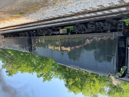 RPCX coach 142 "Franklin Inn", ex. Cuyahoga Valley Railroad NRHX 142, ex. Maryland Area Regional Commuter 142, exx. Southeast Michigan Transportation Authority 112 "Pleasant Ridge", exxx. Penn Central 1537, nee Pennsylvania Railroad 21 roomette sleeping car 8258 built by Budd Company in 1949. It operated through Fort Wayne, Indiana during its original careers. Converted to a traditional coach in 1963 for the World's Fair in New York City, 148 wound its way through commuter train service until were eventually obtained and renovated by the National Railway Historical Society (Washington DC Chapter) in 2008. It operated in occasional rail excursion service and was in limited seasonal use when purchased in mid-2022.