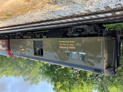 FWRX crew car 701 "Glenn E. Brendel", ex. Kentucky Railroad Museum concession car, nee United States Army kitchen car 89665, built by St. Louis Car Company in 1953. It was stored for over twenty years before being acquired by the Kentucky Railroad Museum and used as a concession car. In 1979, it was utilized on the 765's first excursions to Argos, Indiana in July 1980. It has been converted into a tool car for use on excursions with the 765. Changes include a generator, workbenches, tool cabinets, welder, steam locomotive servicing equipment and supplies and seating.
