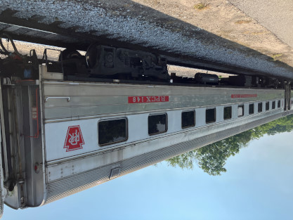 RPCX coach 148 "Collinsville Inn", ex. Cuyahoga Valley Railroad NRHX 148, ex. Maryland Area Regional Commuter 148, exx. Southeast Michigan Transportation Authority 108 "Hazel Park", exxx. Penn Central 1508, nee Pennsylvania Railroad 21 roomette sleeping car 8254 built by Budd Company in 1949. It operated through Fort Wayne, Indiana during its original careers. Converted to a traditional coach in 1963 for the World's Fair in New York City, 148 wound its way through commuter train service until were eventually obtained and renovated by the National Railway Historical Society (Washington DC Chapter) in 2008. It operated in occasional rail excursion service and was in limited seasonal use when purchased in mid-2022.