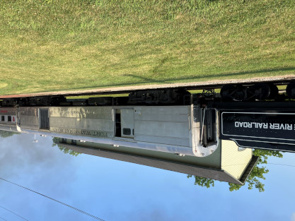 Fort Wayne Railroad Historical Society dining car 8551 "Silver Diner", ex. Amtrak 8551, exx. Amtrak 8500, nee Chicago, Burlington and Quincy 164 built by Budd Company in 1948. It was acquired from Amtrak in 2019 and restored in 2022.