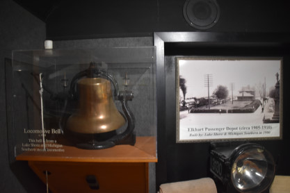 The bell from a Michigan Southern steam engine and the Elkhart passenger depot circa 1905 and 1910.