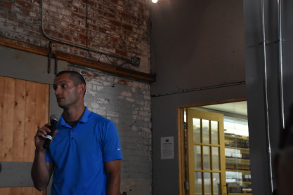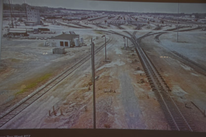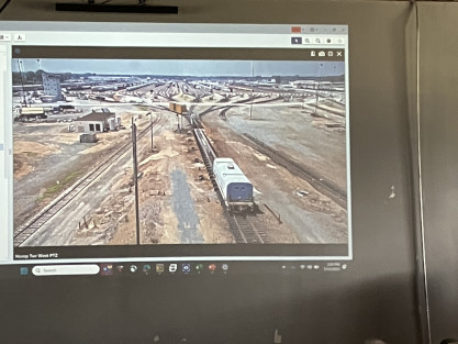 At 2:00 PM, everyone gathered in the freight room of the museum to listen to Geoff Craker, Assistant Superintendent of the Great Lakes Division of Norfolk Southern. He provided a visual overview, as well as a safety briefing, on the last tour of the day, which was at the railroad's Elkhart Hump Yard.