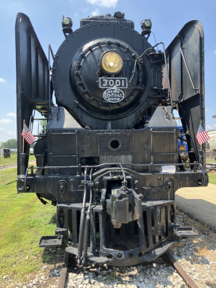New York Central 4-8-2 3001 built by American Locomotive Company in 1940. 3001 hauled both freight and passenger trains, including the 20th Century Limited. In 1957, it was sold to the City of Dallas to replace Texas & Pacific 638 at the Texas State Fairgrounds. In 1984, it was traded to the National New York Central Railroad Museum in exchange for former Pennsylvania Railroad GG1 4903.