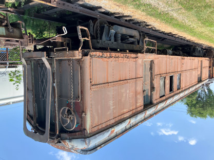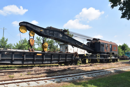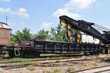 New York Central idler car 504472 for crane X-13, built by Industrial Brownhoist in 1949. It was the first of four oil fired, self-propelled steam cranes built by the company and was based in Selkirk, New York then donated by Conrail in 1997.