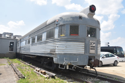 New York Central observation car "City of Elkhart", nee Chicago, Rock Island & Pacific 454 "Minnesota", built by Budd Company in 1937. It is painted for NYC, to represent similar Budd-built observation cars that were an integral part of the post-war Great Steel Fleet of streamliners.