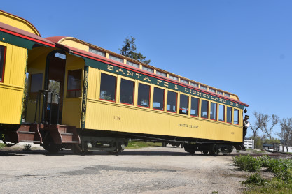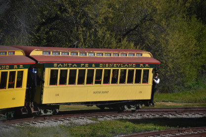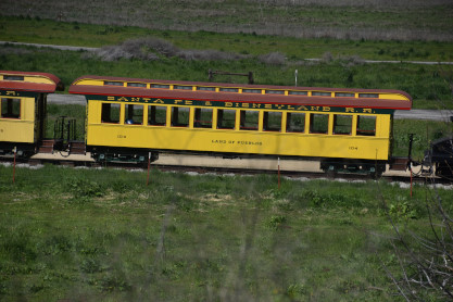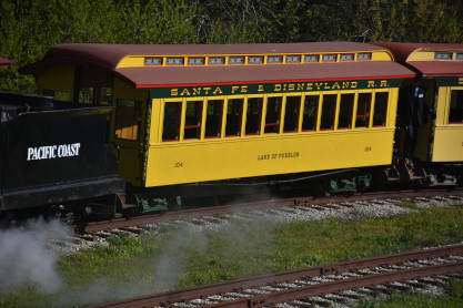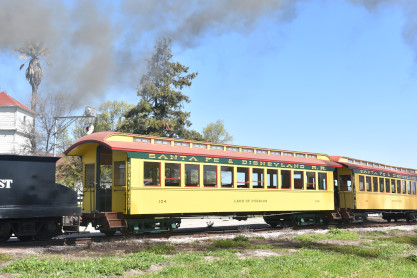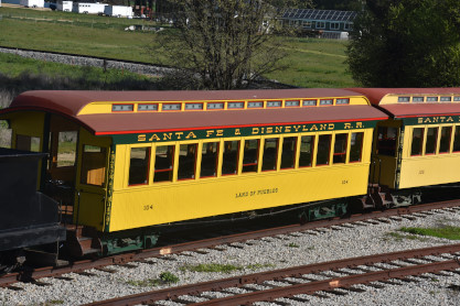 Former Disneyland Railroad coach 104 "Land of Pueblos" built by the Walt Disney Shops in 1955 and was part of the Retlaw 1 trainset used from Disneyland's opening in July 1955 until its retirement following the end of AT&SF's sponsorship of the railroad in 1974. Pacific Coast Railroad owner Rob Rossi acquired the coaches from the Bill Norred estate in 1999. The Norred family retains ownership of the combine, and the observation car from the set became the VIP car "Lilly Belle," which is still in service at Disneyland. This exquisite job was done by Sean Bautista and crew at the Hillcrest Shops in Reedley, California.