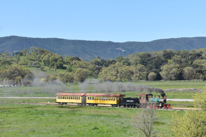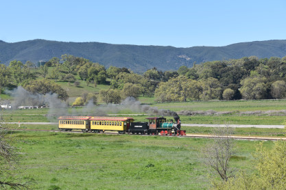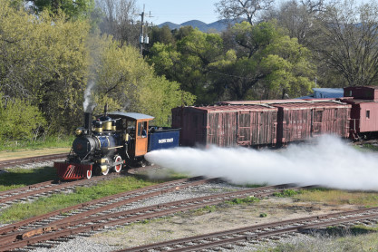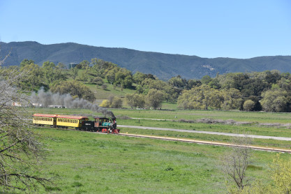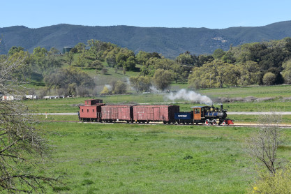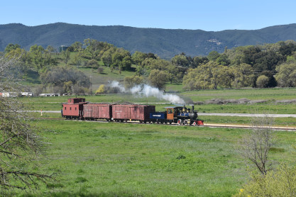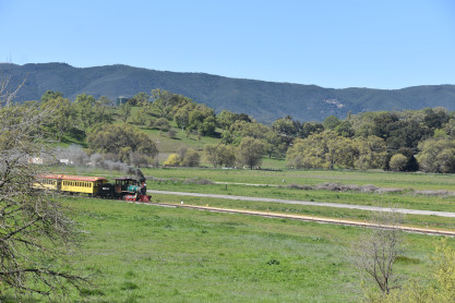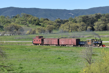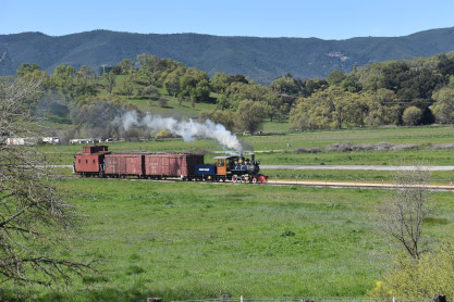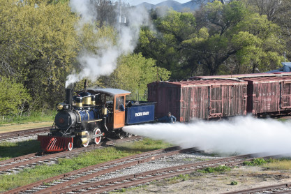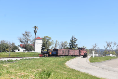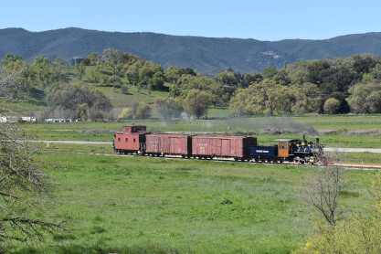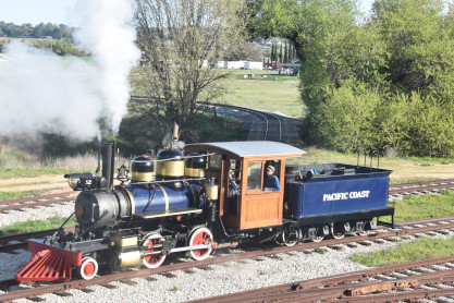 Pacific Coast Railroad 2 pulls its train, photo runby eight.