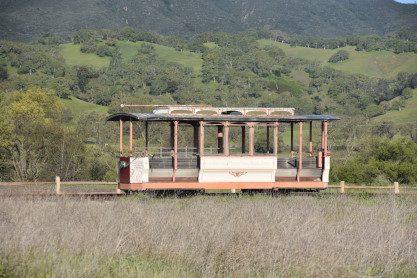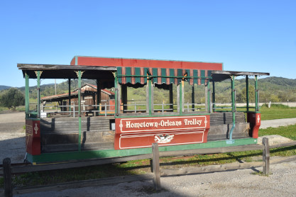 Hometown Orleans Street Railway trolley built by Custom Fabricators Trolley in 1976, which operated at Six Flags Great America and came to the ranch in the mid-1990's.