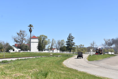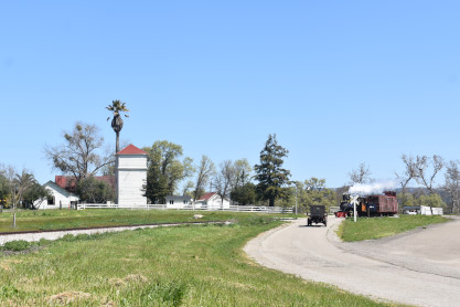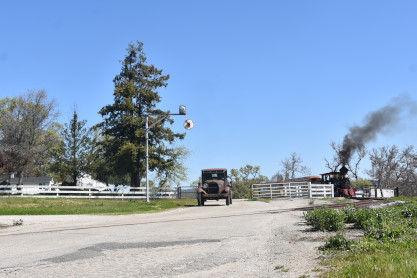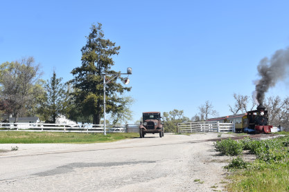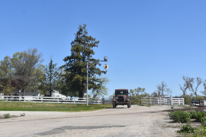 The Model A Ford 4000 made its way out of the yard to the boarding area.