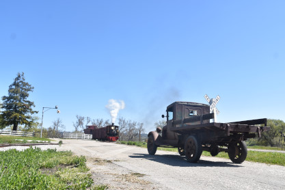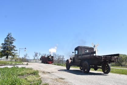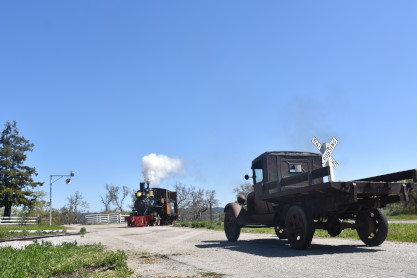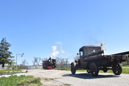 Pacific Coast Railroad 2 with the freight train, photo runby sixteen and the antique truck used as a prop.