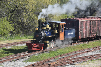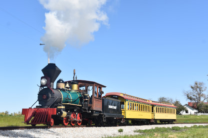 Pacific Coast Railroad 2-4-0 2 "Roger Linn", nee Lehigh Stone Company 800, built by the Vulcan Iron Works in 1922, began its life as a humble tank engine in a Lehigh, Illinois quarry. Retired in 1960, 800 and 802 were sold to Peter Burno of Spring Green, Wisconsin, who, in 1968, sold them to George Roose, president of Cedar Point amusement park. Roose, who is often credited for saving the venerable Sandusky, Ohio, attraction from its likely demise, had taken a cue from the success of Disneyland and Knotts Berry Farm and added a narrow-gauge steam railroad to the park that same year.