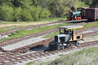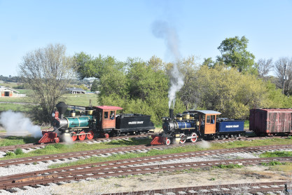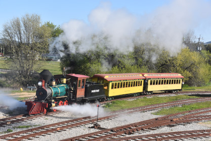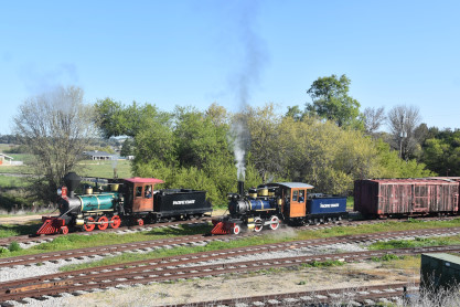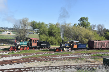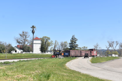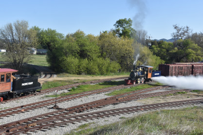 Pacific Coast Railroad 2 reversed from the boarding area to the upper yard to connect to our freight train. Photo runby one.