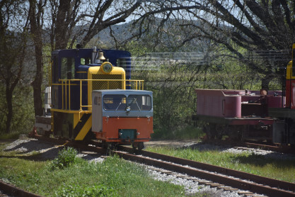 Pacific Coast Railroad 3 reversing to the passenger consist while 2 is worked on. Photo runby three.