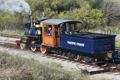Pacific Coast Railroad 3 with its passenger train.