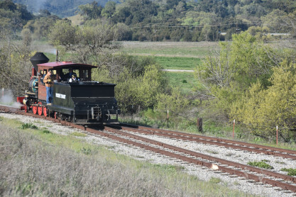 Pacific Coast Railroad 3 and its passenger train, photo runby fiftteen, after which it reversed.