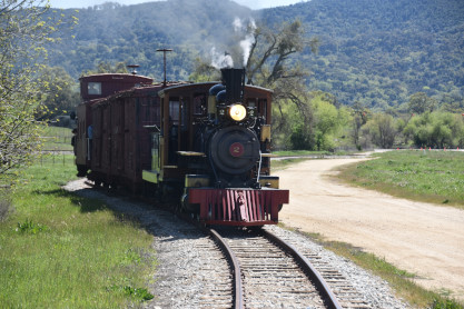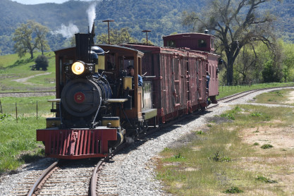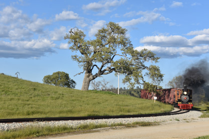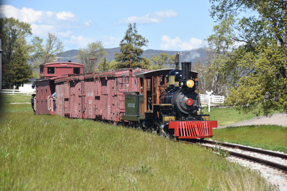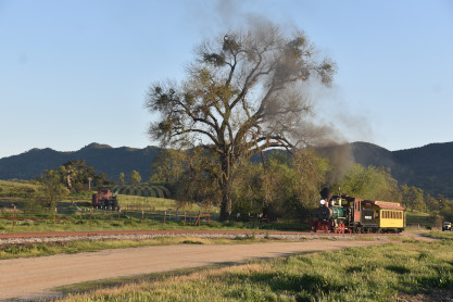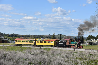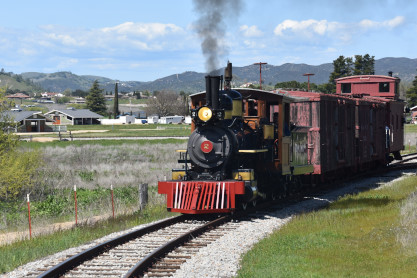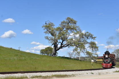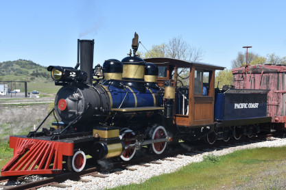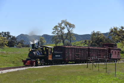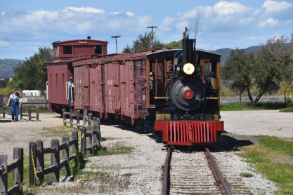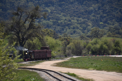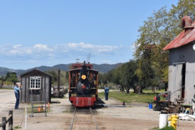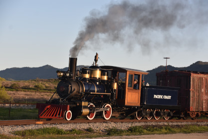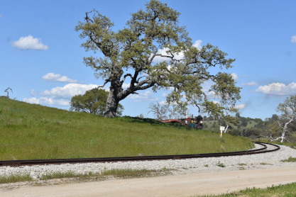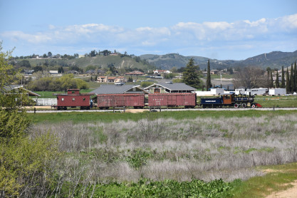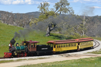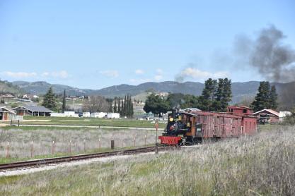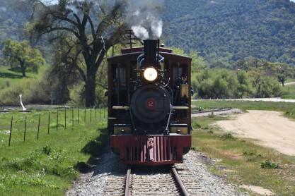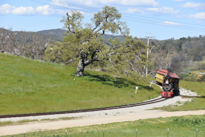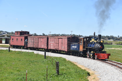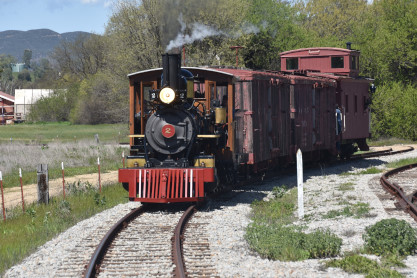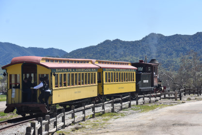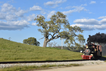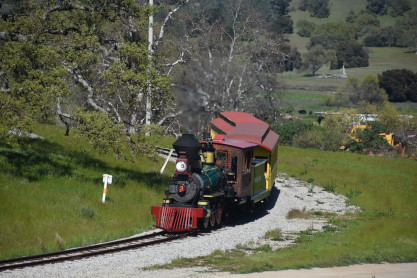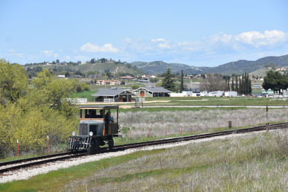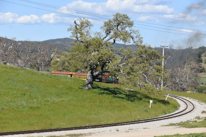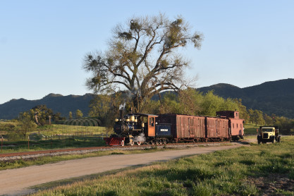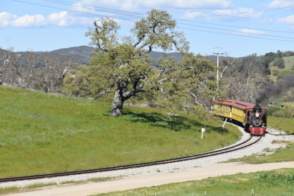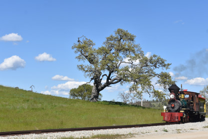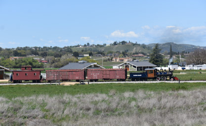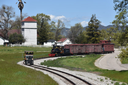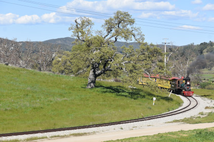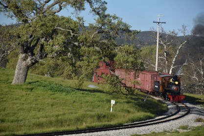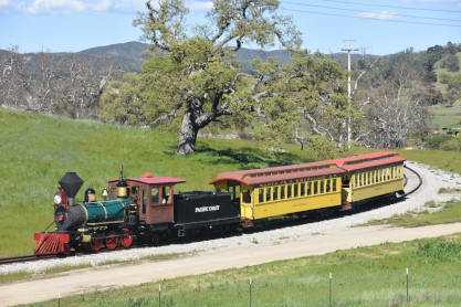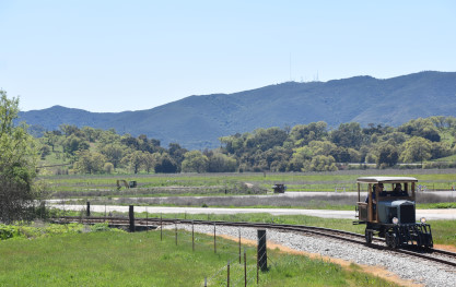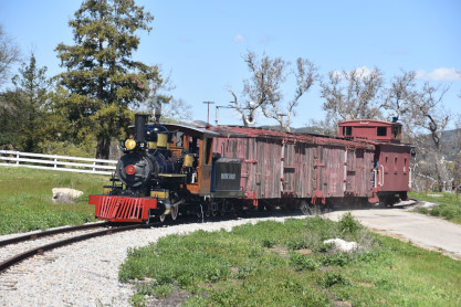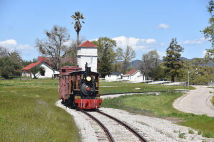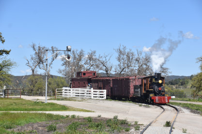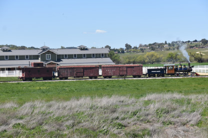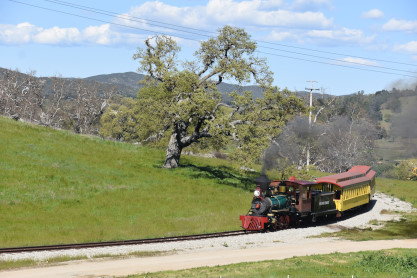 The passenger train leading the way around the Santa Margarita Ranch.