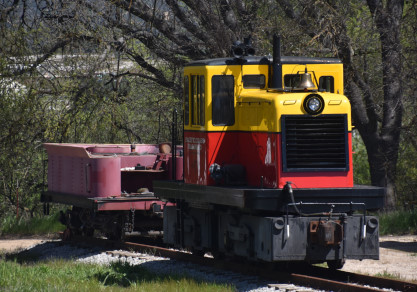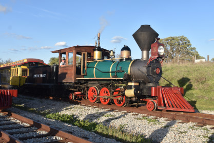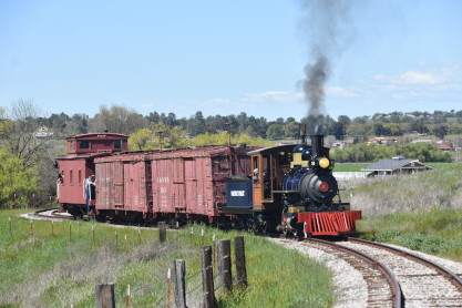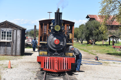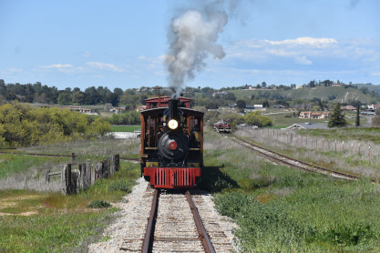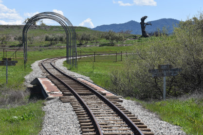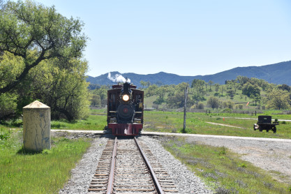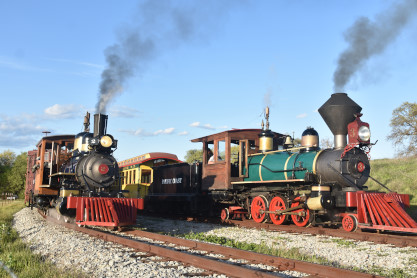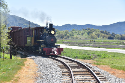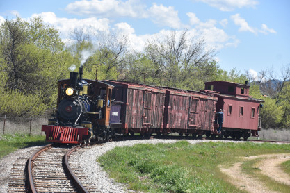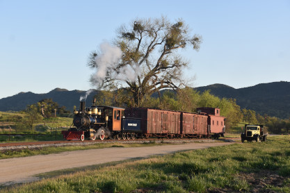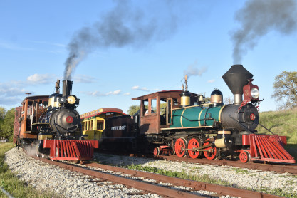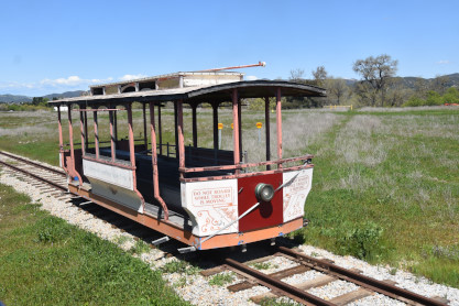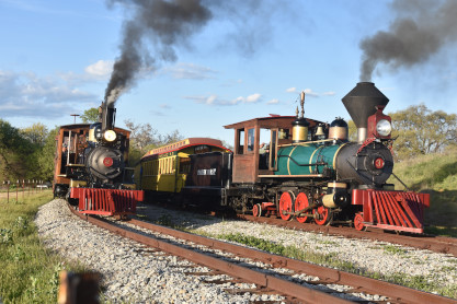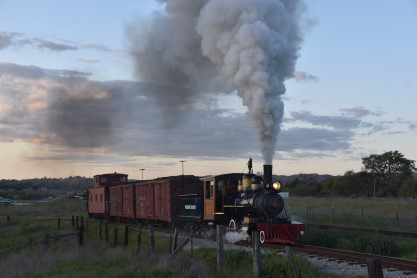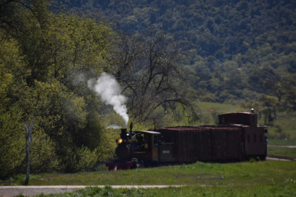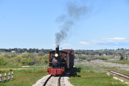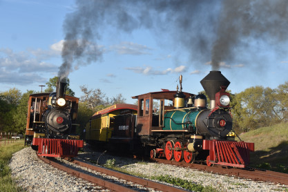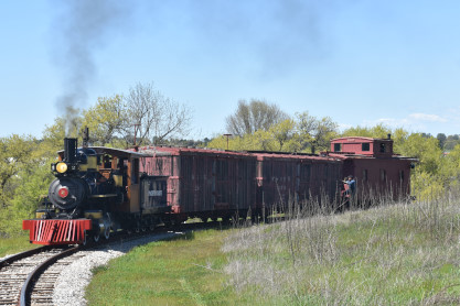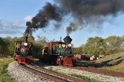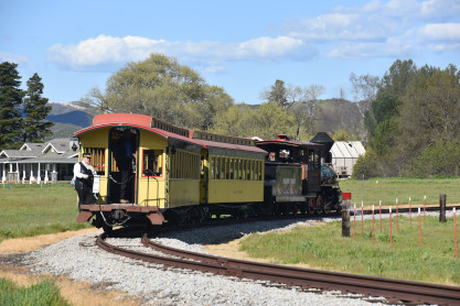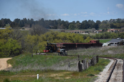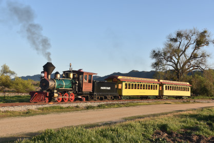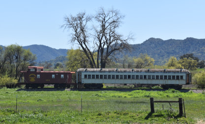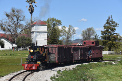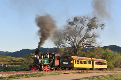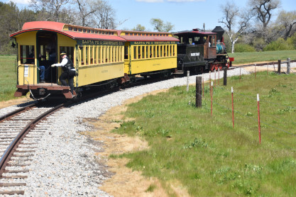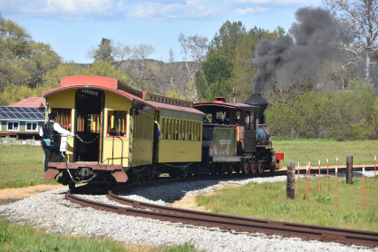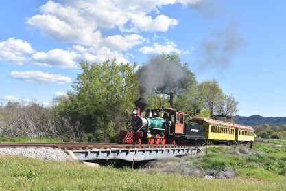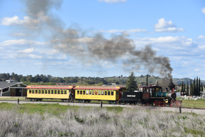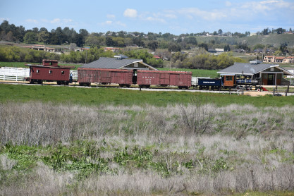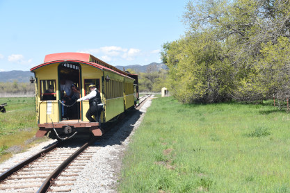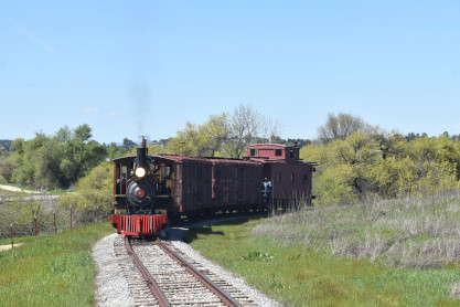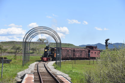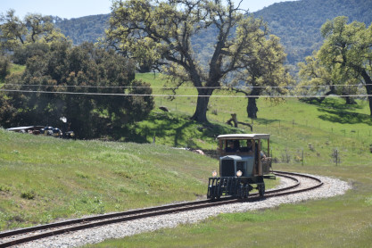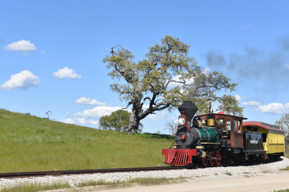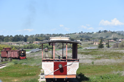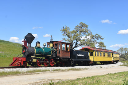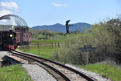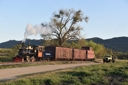 The passenger train leading the way around the Santa Margarita Ranch.