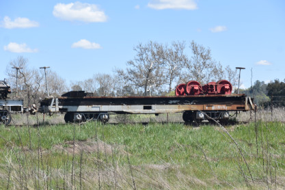 Two former Southern Pacific interurban coaches.