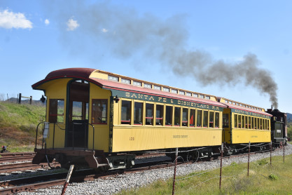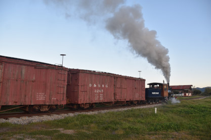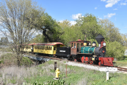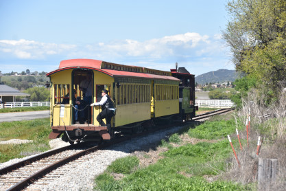 The train depot. Dak then announced that anyone who wanted to ride in the cab of the steam engine, the regular passenger cars, the caboose or in the back of the Model A Ford were welcome to do so, and many people took him up on his offer. Both Elizabeth and I chose the steam engine first.