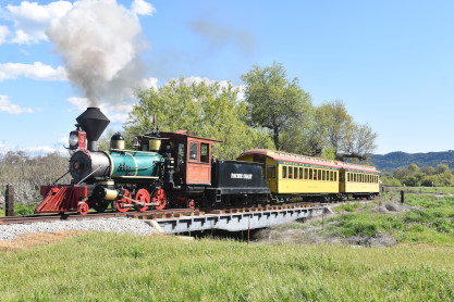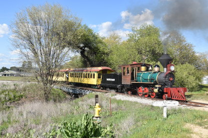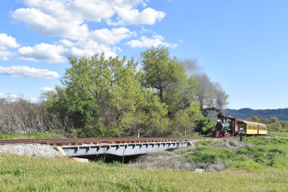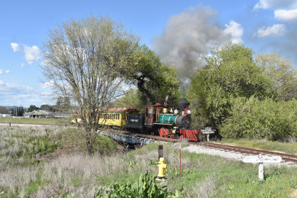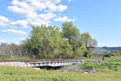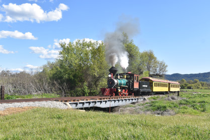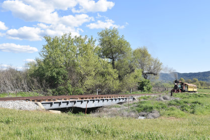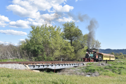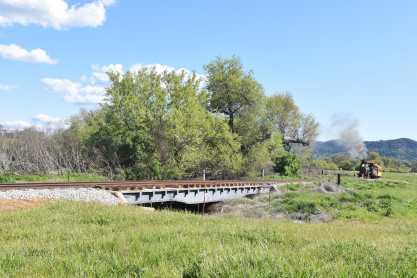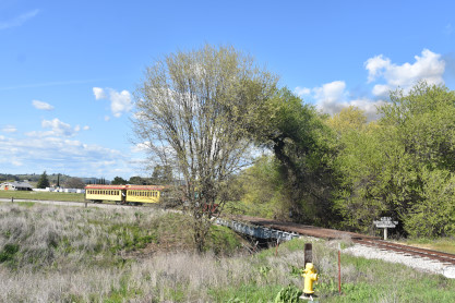 The passenger train travelling over the Tassajara Bridge crossing North Creek.