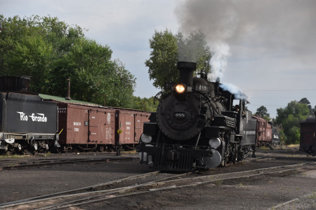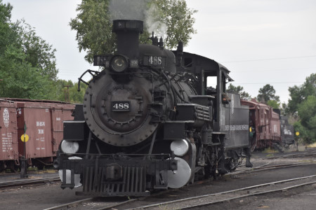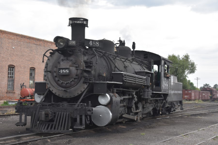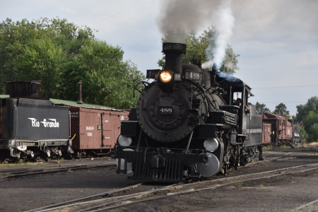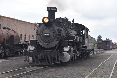 Cumbres and Toltec Scenic 2-8-2 K37 488 reverses in the yard.