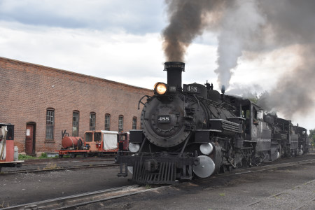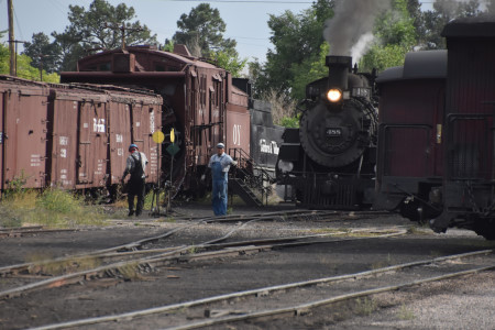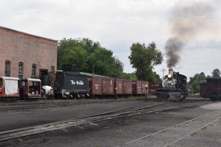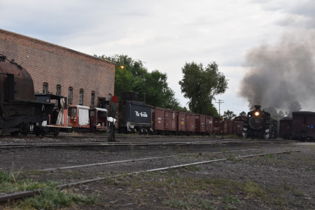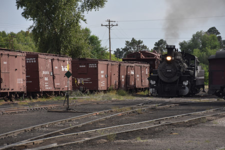 Cumbres and Toltec Scenic 2-8-2 487 switching in preparation for the triple-header..