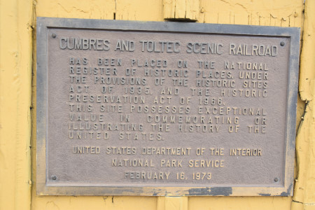 The National Register of Historic Places plaque on the Chama depot.