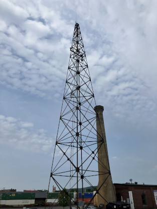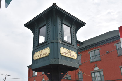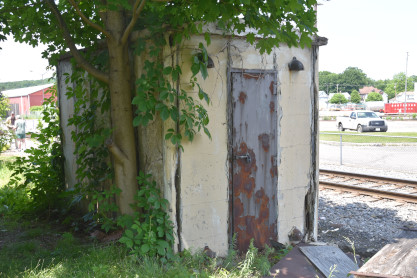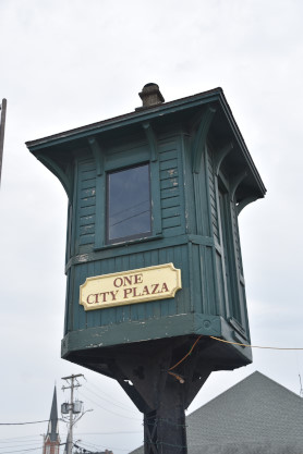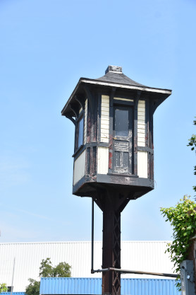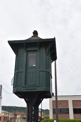 Delaware, Lackawanna and Western gatesman's tower dates from circa 1907 and originally stood southeast of the Front Street crossing.